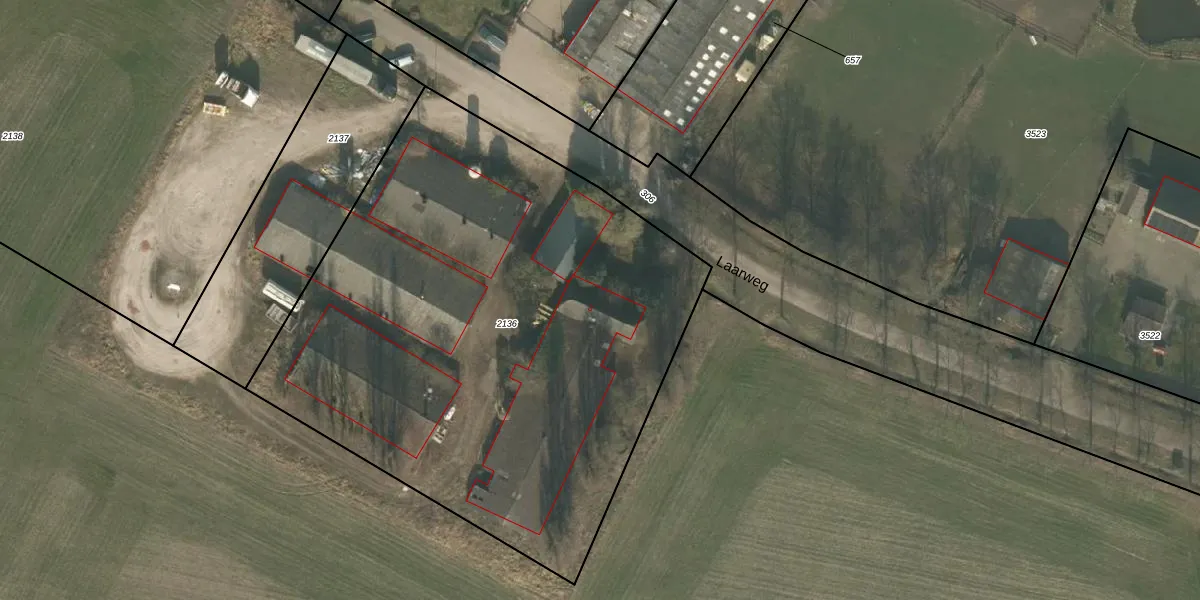 Laarweg 3 is gelegen op kadastraal perceel UDN00P2136. Deze kadastrale aanduiding is uniek en wordt gebruikt door het Kadaster om eigendomsrechten en andere zakelijke rechten vast te leggen. Het perceel maakt onderdeel uit van de kadastrale gemeente Uden.