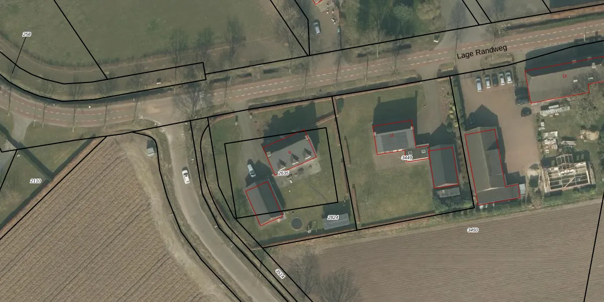 Lage Randweg 9 is gelegen op kadastraal perceel UDN00P2635. Deze kadastrale aanduiding is uniek en wordt gebruikt door het Kadaster om eigendomsrechten en andere zakelijke rechten vast te leggen. Het perceel maakt onderdeel uit van de kadastrale gemeente Uden.