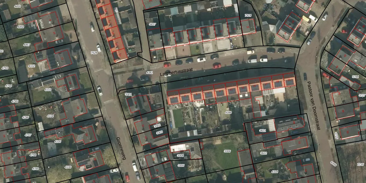 Het perceel waarop Lambertusstraat 3 staat heeft een oppervlakte van 2277 m². Dit is een zeer groot perceel. De perceeloppervlakte wordt geregistreerd door het Kadaster. Gedetailleerde informatie over de maten van dit perceel kunt u vinden in het rapport Kadastrale kaart met maatvoering van Lambertusstraat 3.