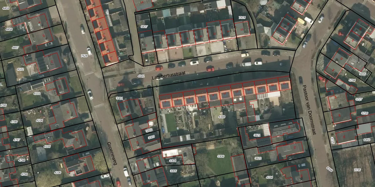 Het perceel waarop Lambertusstraat 5 staat heeft een oppervlakte van 2277 m². Dit is een zeer groot perceel. De perceeloppervlakte wordt geregistreerd door het Kadaster. Gedetailleerde informatie over de maten van dit perceel kunt u vinden in het rapport Kadastrale kaart met maatvoering van Lambertusstraat 5.