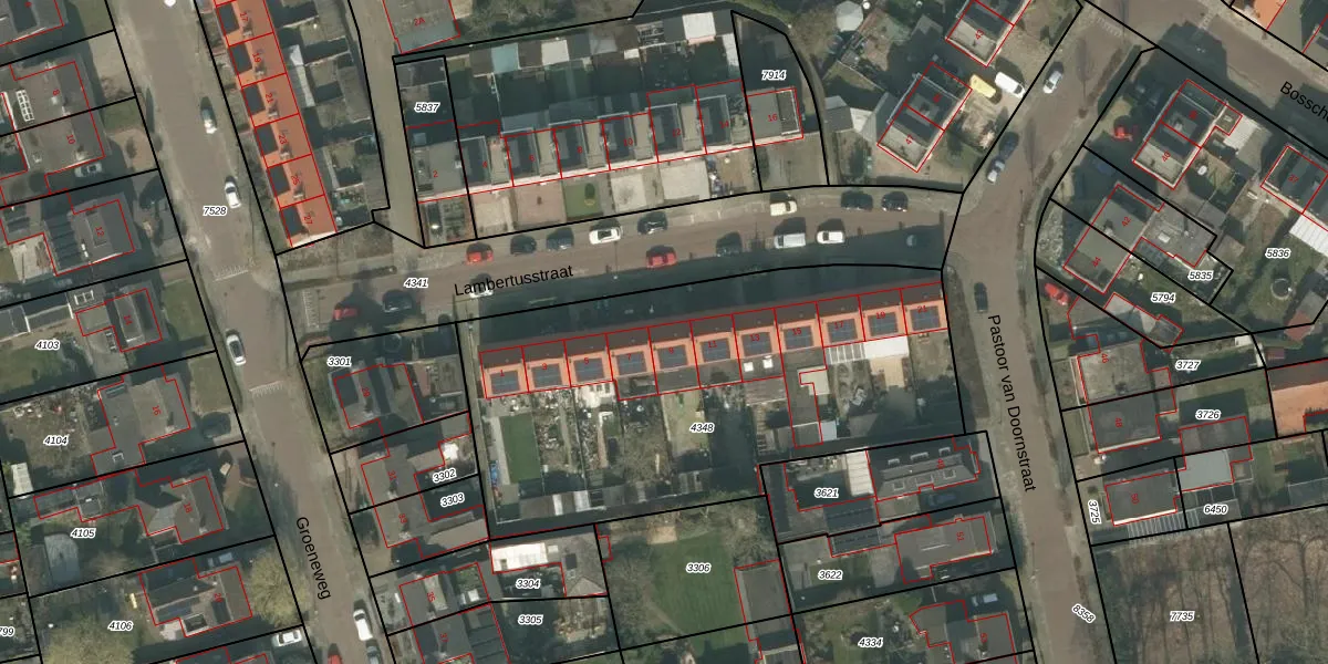 Het perceel waarop Lambertusstraat 9 staat heeft een oppervlakte van 2277 m². Dit is een zeer groot perceel. De perceeloppervlakte wordt geregistreerd door het Kadaster. Gedetailleerde informatie over de maten van dit perceel kunt u vinden in het rapport Kadastrale kaart met maatvoering van Lambertusstraat 9.