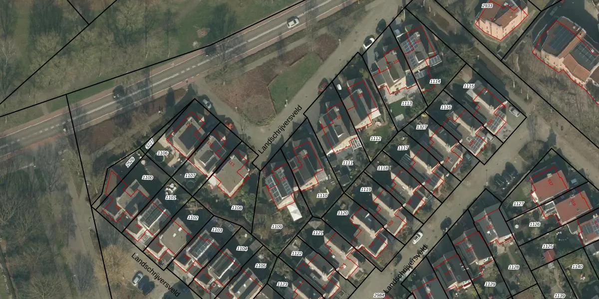 Het perceel waarop Landschrijversveld 109 staat heeft een oppervlakte van 348 m². Dit is een groot perceel. De perceeloppervlakte wordt geregistreerd door het Kadaster. Gedetailleerde informatie over de maten van dit perceel kunt u vinden in het rapport Kadastrale kaart met maatvoering van Landschrijversveld 109.