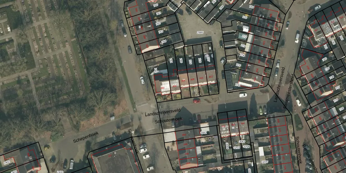 Landschrijversveld 404 is gelegen op kadastraal perceel UDN00N781. Deze kadastrale aanduiding is uniek en wordt gebruikt door het Kadaster om eigendomsrechten en andere zakelijke rechten vast te leggen. Het perceel maakt onderdeel uit van de kadastrale gemeente Uden.