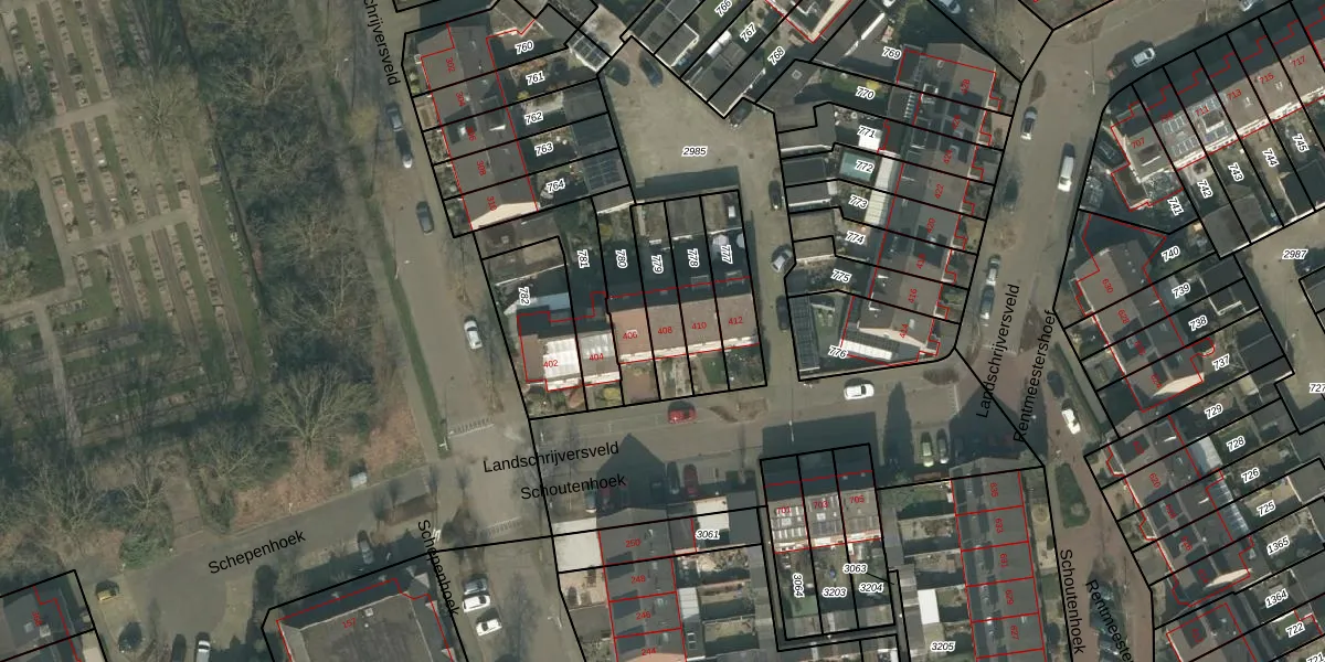 Gebruik de zoekbalk of klik op een perceel voor informatie over de adressen binnen dit perceel.