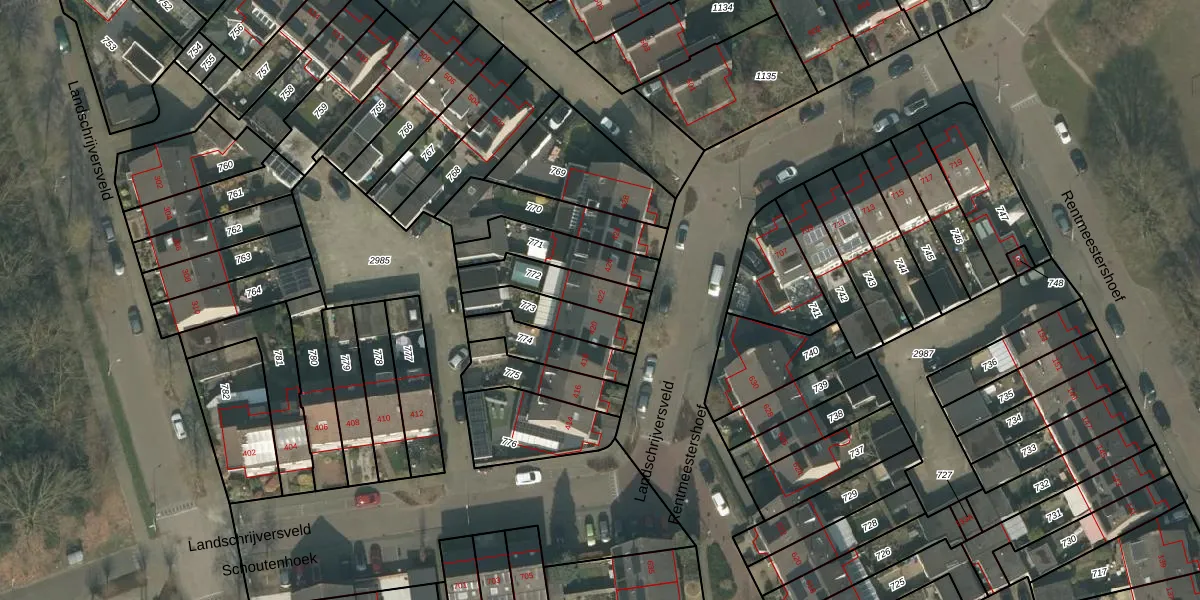 Landschrijversveld 422 is gelegen op kadastraal perceel UDN00N772. Deze kadastrale aanduiding is uniek en wordt gebruikt door het Kadaster om eigendomsrechten en andere zakelijke rechten vast te leggen. Het perceel maakt onderdeel uit van de kadastrale gemeente Uden.