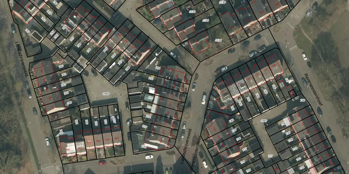 Gebruik de zoekbalk of klik op een perceel voor informatie over de adressen binnen dit perceel.