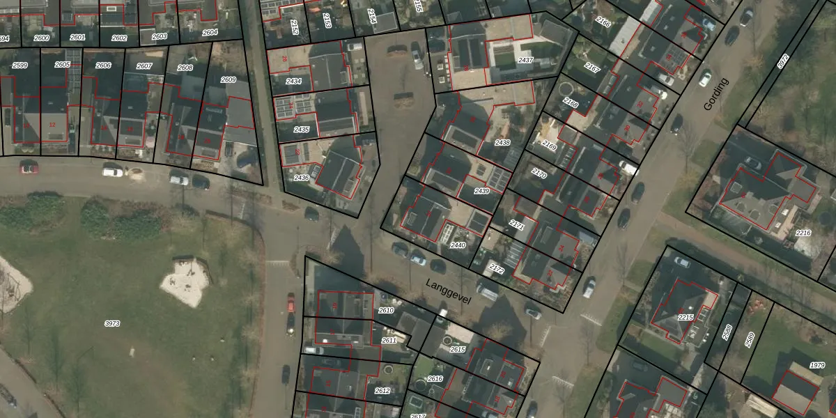 Langgevel 34 is gelegen op kadastraal perceel UDN00P2440. Deze kadastrale aanduiding is uniek en wordt gebruikt door het Kadaster om eigendomsrechten en andere zakelijke rechten vast te leggen. Het perceel maakt onderdeel uit van de kadastrale gemeente Uden.