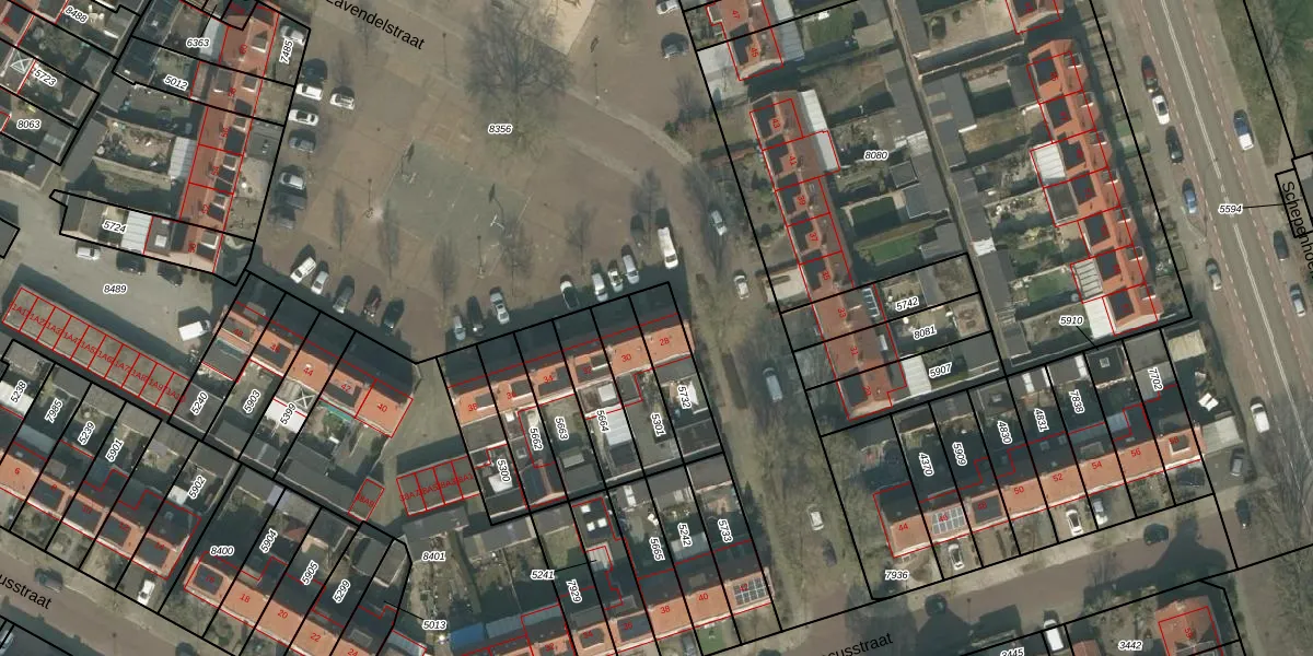 Gebruik de zoekbalk of klik op een perceel voor informatie over de adressen binnen dit perceel.