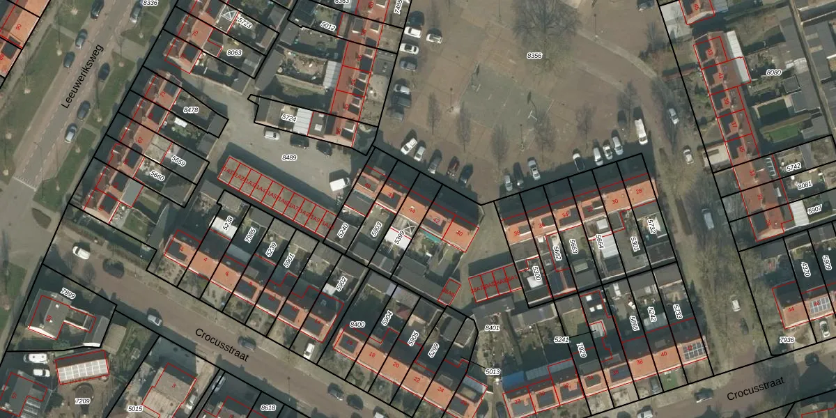 Gebruik de zoekbalk of klik op een perceel voor informatie over de adressen binnen dit perceel.