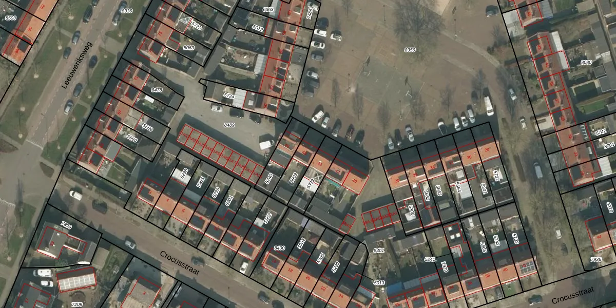 Gebruik de zoekbalk of klik op een perceel voor informatie over de adressen binnen dit perceel.