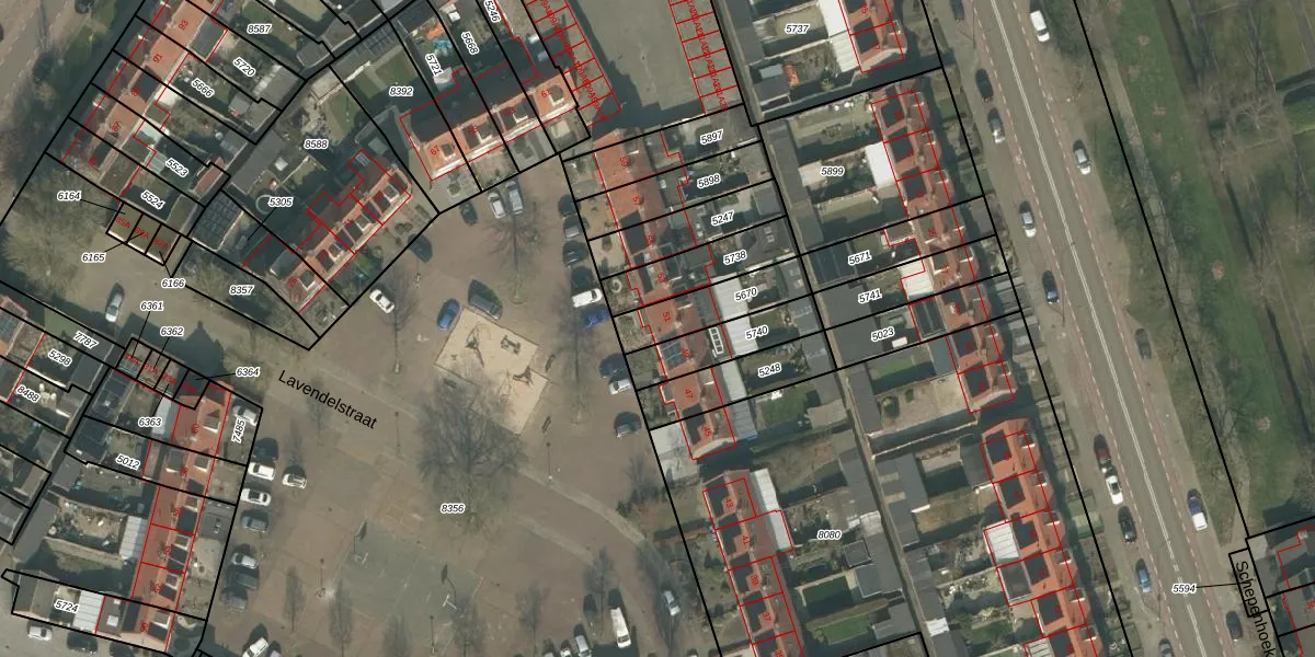 Het perceel waarop Lavendelstraat 51 staat heeft een oppervlakte van 184 m². Dit is een middelgroot perceel. De perceeloppervlakte wordt geregistreerd door het Kadaster. Gedetailleerde informatie over de maten van dit perceel kunt u vinden in het rapport Kadastrale kaart met maatvoering van Lavendelstraat 51.