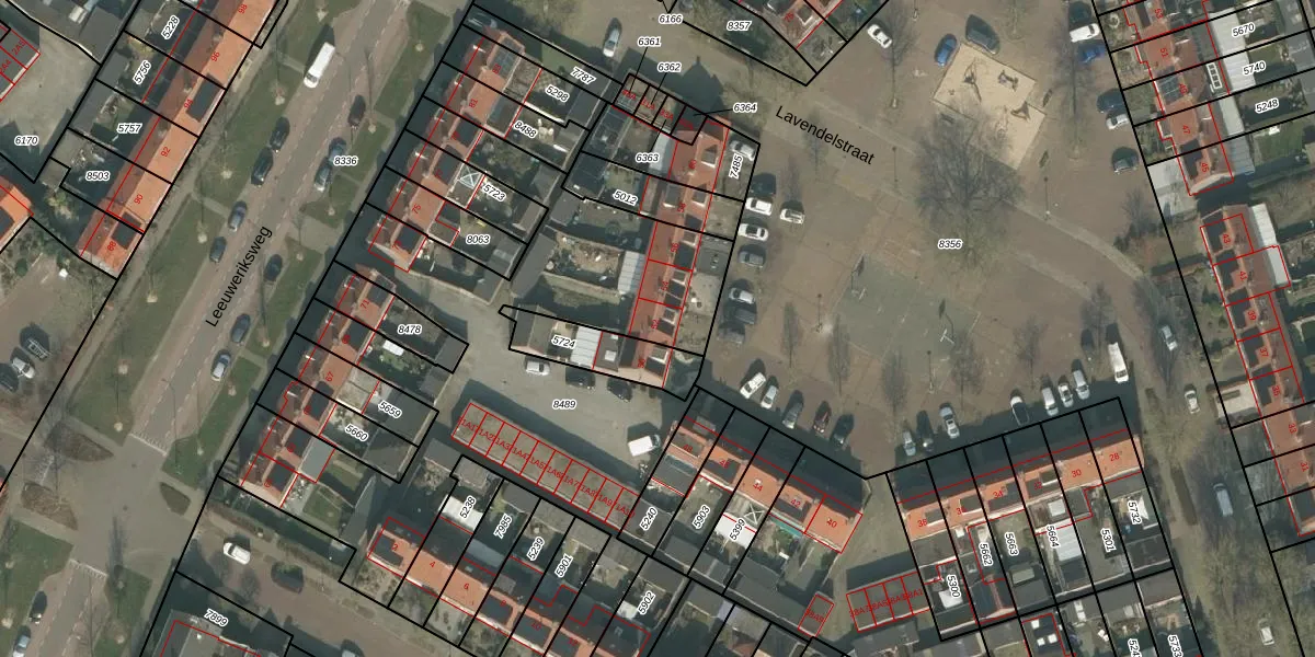Het perceel waarop Lavendelstraat 52 staat heeft een oppervlakte van 2494 m². Dit is een zeer groot perceel. De perceeloppervlakte wordt geregistreerd door het Kadaster. Gedetailleerde informatie over de maten van dit perceel kunt u vinden in het rapport Kadastrale kaart met maatvoering van Lavendelstraat 52.