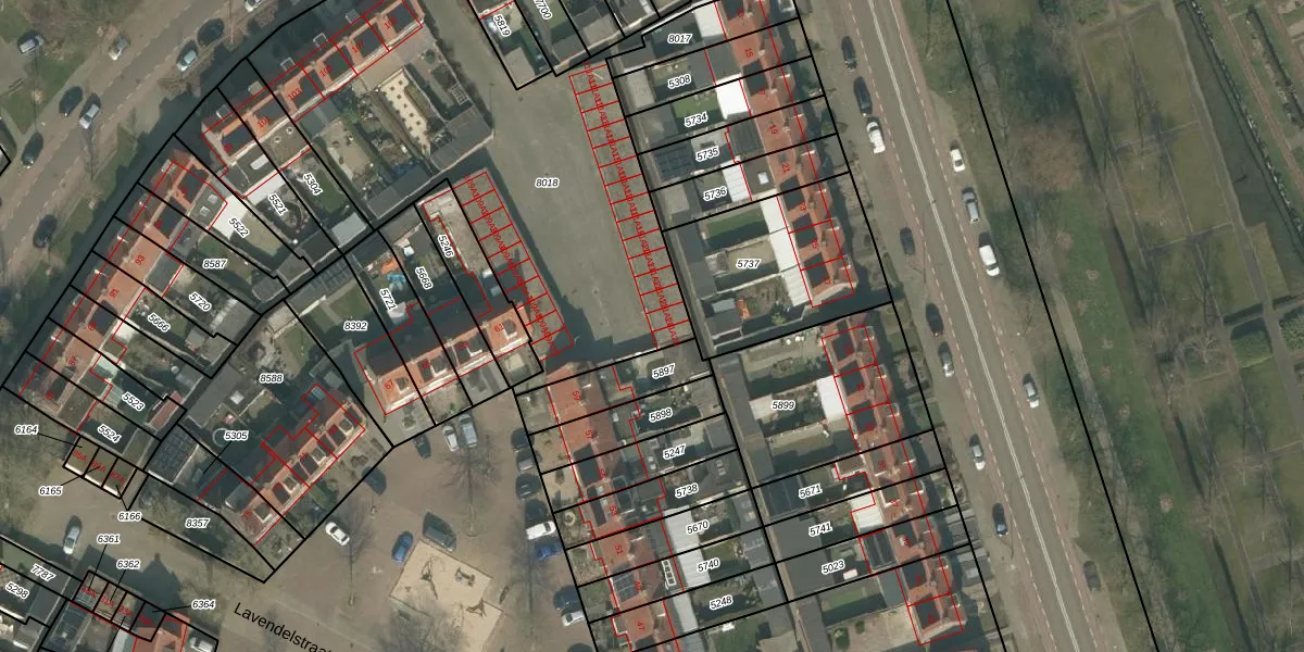 Het perceel waarop het adres ligt is UDN00-M-8018. De afkorting 'UDN00' staat voor kadastrale gemeente Uden. De gemiddelde perceelgrootte in Uden is 3253,45 m². Dit perceel is kleiner: de perceeloppervlakte bedraagt 2499 m². Het kleinste perceel in de kadastrale gemeente is 0 m² groot. De grootste perceeloppervlakte is 1,06 km². Er zijn 31 adressen aanwezig op het perceel. De huidige grenzen van het perceel zijn digitaal in de Basisregistratie Kadaster (BRK) geregistreerd op 24-04-2013.