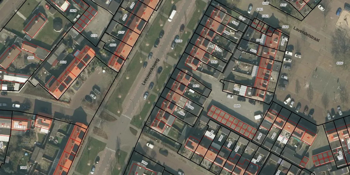 Het perceel waarop Leeuweriksweg 69 staat heeft een oppervlakte van 2494 m². Dit is een zeer groot perceel. De perceeloppervlakte wordt geregistreerd door het Kadaster. Gedetailleerde informatie over de maten van dit perceel kunt u vinden in het rapport Kadastrale kaart met maatvoering van Leeuweriksweg 69.