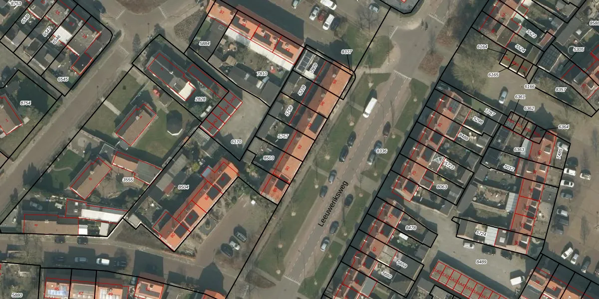 Gebruik de zoekbalk of klik op een perceel voor informatie over de adressen binnen dit perceel.