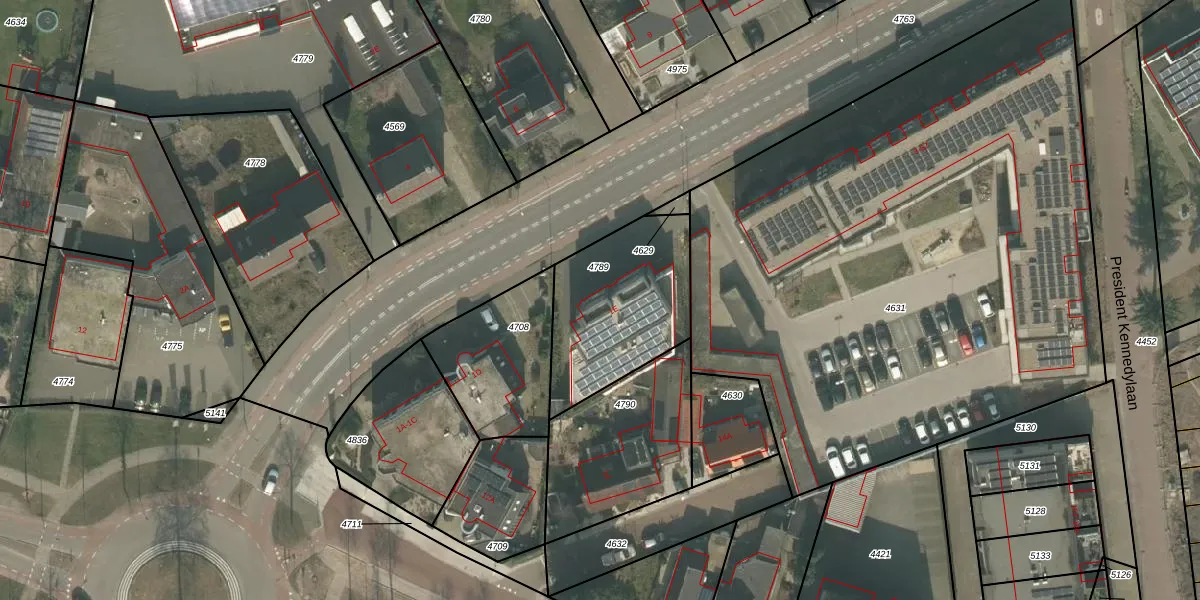 Gebruik de zoekbalk of klik op een perceel voor informatie over de adressen binnen dit perceel.