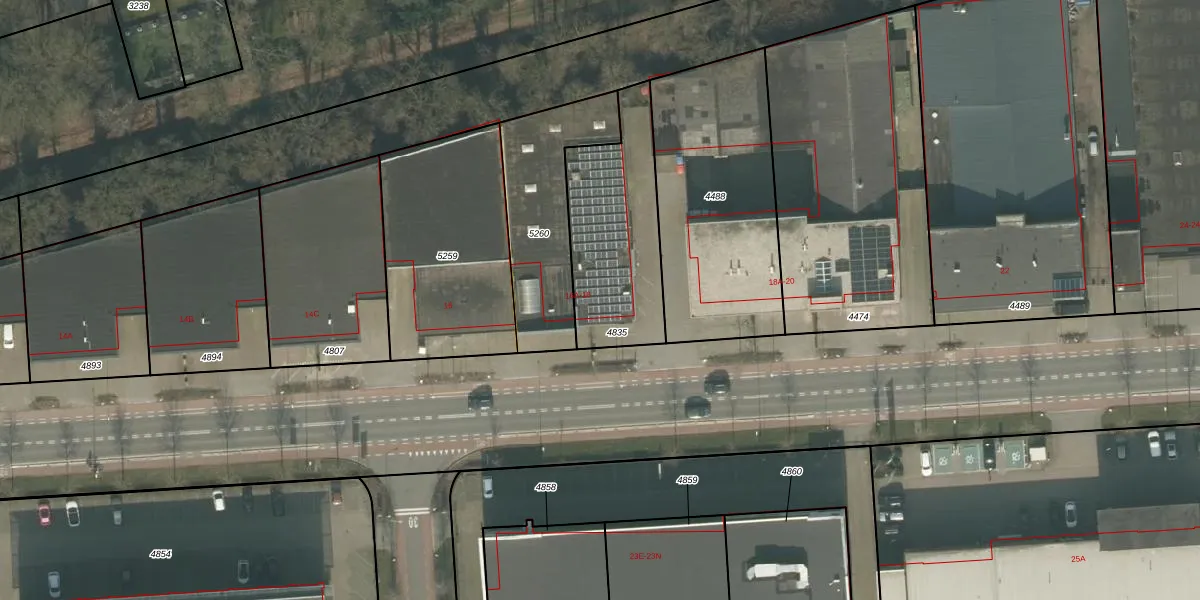Gebruik de zoekbalk of klik op een perceel voor informatie over de adressen binnen dit perceel.