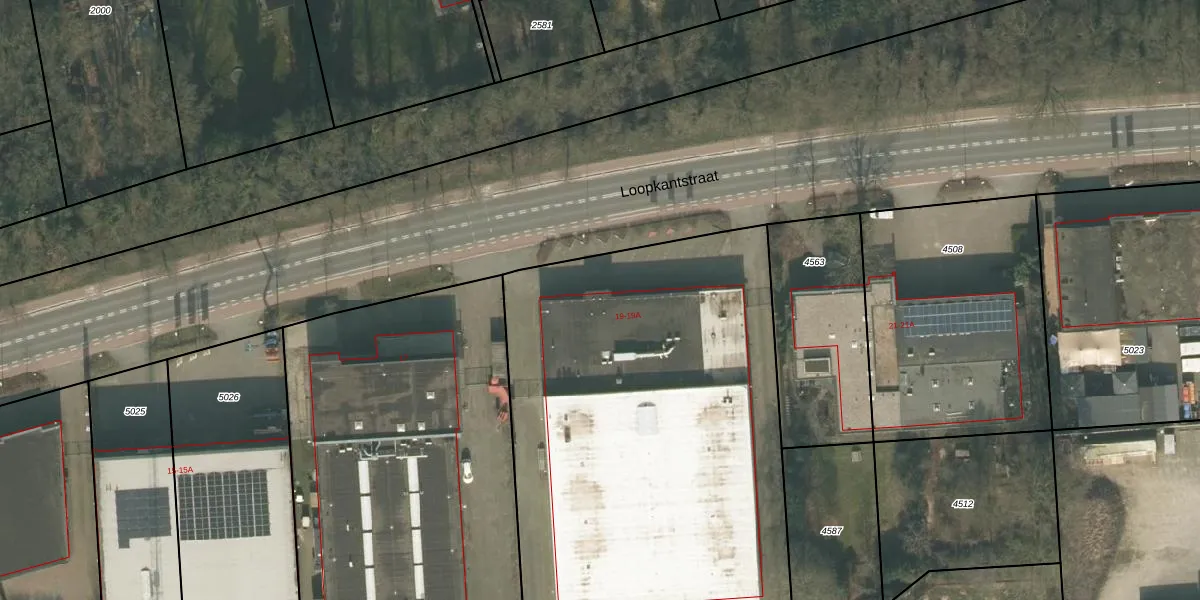 Het perceel waarop Loopkantstraat 19 staat heeft een oppervlakte van 4048 m². Dit is een zeer groot perceel. De perceeloppervlakte wordt geregistreerd door het Kadaster. Gedetailleerde informatie over de maten van dit perceel kunt u vinden in het rapport Kadastrale kaart met maatvoering van Loopkantstraat 19.