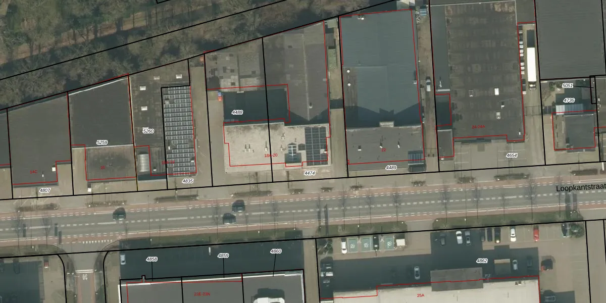 Loopkantstraat 20 is gelegen op kadastraal perceel UDN00C4474. Deze kadastrale aanduiding is uniek en wordt gebruikt door het Kadaster om eigendomsrechten en andere zakelijke rechten vast te leggen. Het perceel maakt onderdeel uit van de kadastrale gemeente Uden.