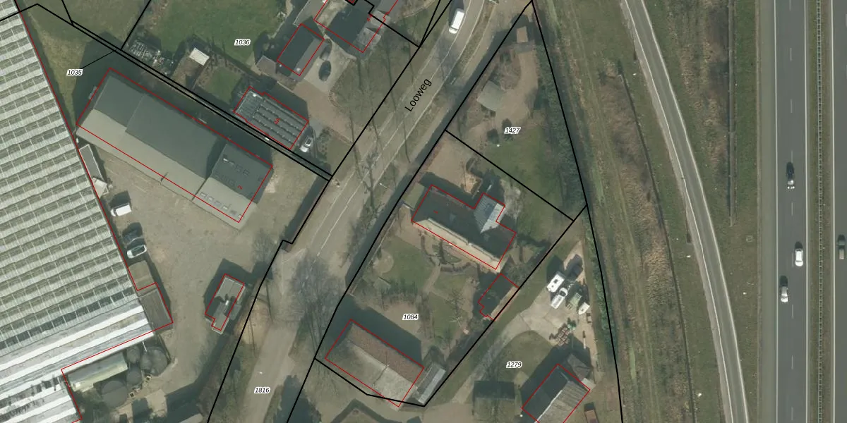 Looweg 1 is gelegen op kadastraal perceel UDN00Q1084. Deze kadastrale aanduiding is uniek en wordt gebruikt door het Kadaster om eigendomsrechten en andere zakelijke rechten vast te leggen. Het perceel maakt onderdeel uit van de kadastrale gemeente Uden.