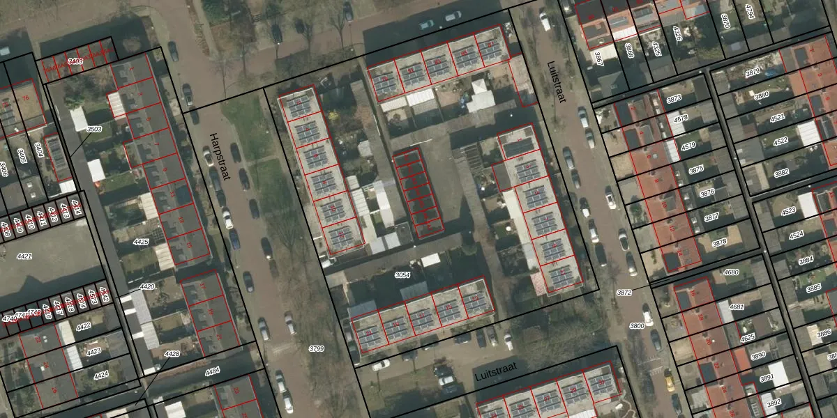 Het perceel waarop Luitstraat 1-A-5 staat heeft een oppervlakte van 4349 m². Dit is een zeer groot perceel. De perceeloppervlakte wordt geregistreerd door het Kadaster. Gedetailleerde informatie over de maten van dit perceel kunt u vinden in het rapport Kadastrale kaart met maatvoering van Luitstraat 1-A-5.