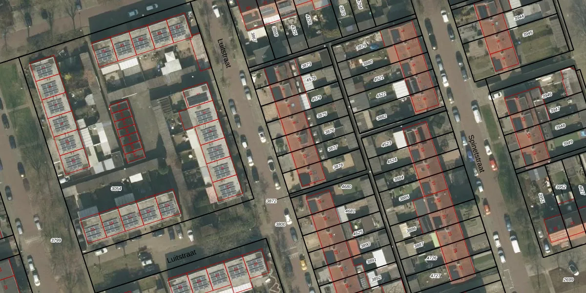 Gebruik de zoekbalk of klik op een perceel voor informatie over de adressen binnen dit perceel.