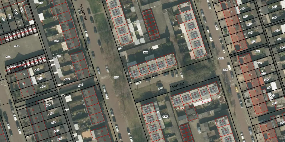 Luitstraat 19 is gelegen op kadastraal perceel UDN00B3054. Deze kadastrale aanduiding is uniek en wordt gebruikt door het Kadaster om eigendomsrechten en andere zakelijke rechten vast te leggen. Het perceel maakt onderdeel uit van de kadastrale gemeente Uden.