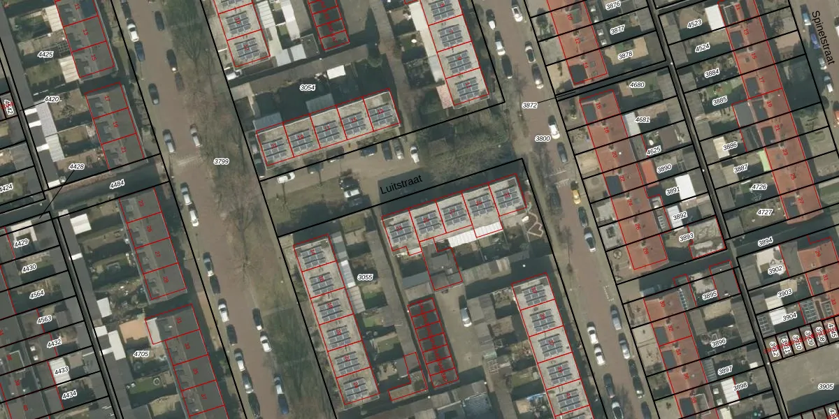 Luitstraat 25 is gelegen op kadastraal perceel UDN00B3055. Deze kadastrale aanduiding is uniek en wordt gebruikt door het Kadaster om eigendomsrechten en andere zakelijke rechten vast te leggen. Het perceel maakt onderdeel uit van de kadastrale gemeente Uden.