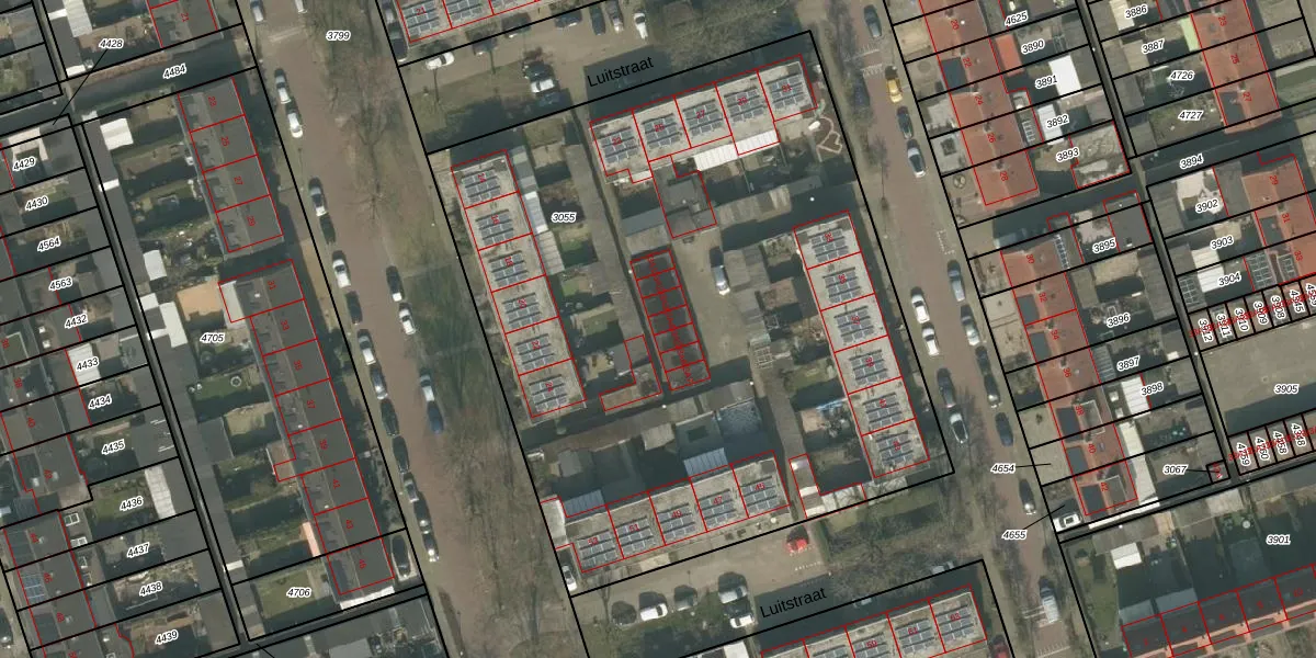 Luitstraat 33-A-4 is gelegen op kadastraal perceel UDN00B3055. Deze kadastrale aanduiding is uniek en wordt gebruikt door het Kadaster om eigendomsrechten en andere zakelijke rechten vast te leggen. Het perceel maakt onderdeel uit van de kadastrale gemeente Uden.
