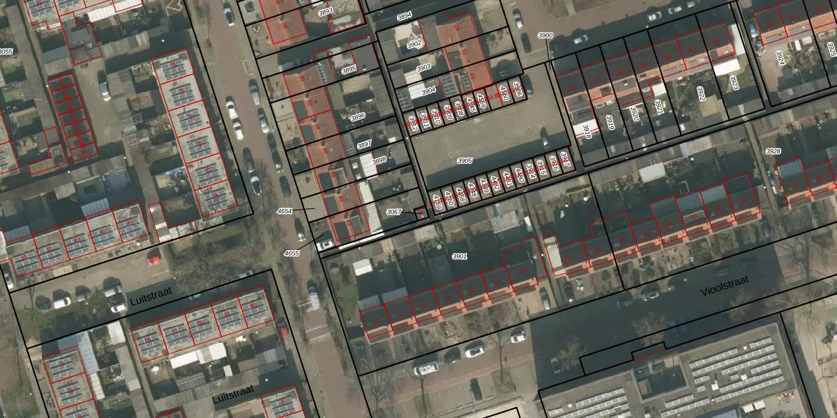 Luitstraat 42-A is gelegen op kadastraal perceel UDN00B3067. Deze kadastrale aanduiding is uniek en wordt gebruikt door het Kadaster om eigendomsrechten en andere zakelijke rechten vast te leggen. Het perceel maakt onderdeel uit van de kadastrale gemeente Uden.