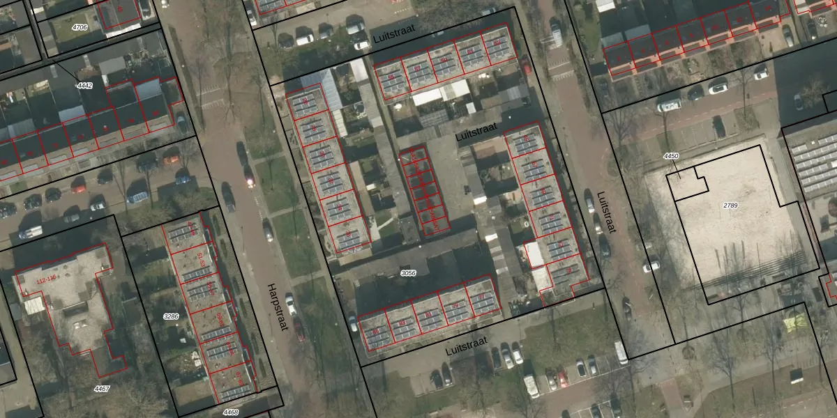 Het perceel waarop Luitstraat 65-A-5 staat heeft een oppervlakte van 4347 m². Dit is een zeer groot perceel. De perceeloppervlakte wordt geregistreerd door het Kadaster. Gedetailleerde informatie over de maten van dit perceel kunt u vinden in het rapport Kadastrale kaart met maatvoering van Luitstraat 65-A-5.