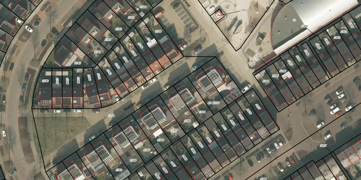 Het perceel waarop Malder 19 staat heeft een oppervlakte van 245 m². Dit is een middelgroot perceel. De perceeloppervlakte wordt geregistreerd door het Kadaster. Gedetailleerde informatie over de maten van dit perceel kunt u vinden in het rapport Kadastrale kaart met maatvoering van Malder 19.