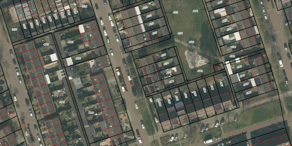 Mandolinestraat 12 is gelegen op kadastraal perceel UDN00B4378. Deze kadastrale aanduiding is uniek en wordt gebruikt door het Kadaster om eigendomsrechten en andere zakelijke rechten vast te leggen. Het perceel maakt onderdeel uit van de kadastrale gemeente Uden.