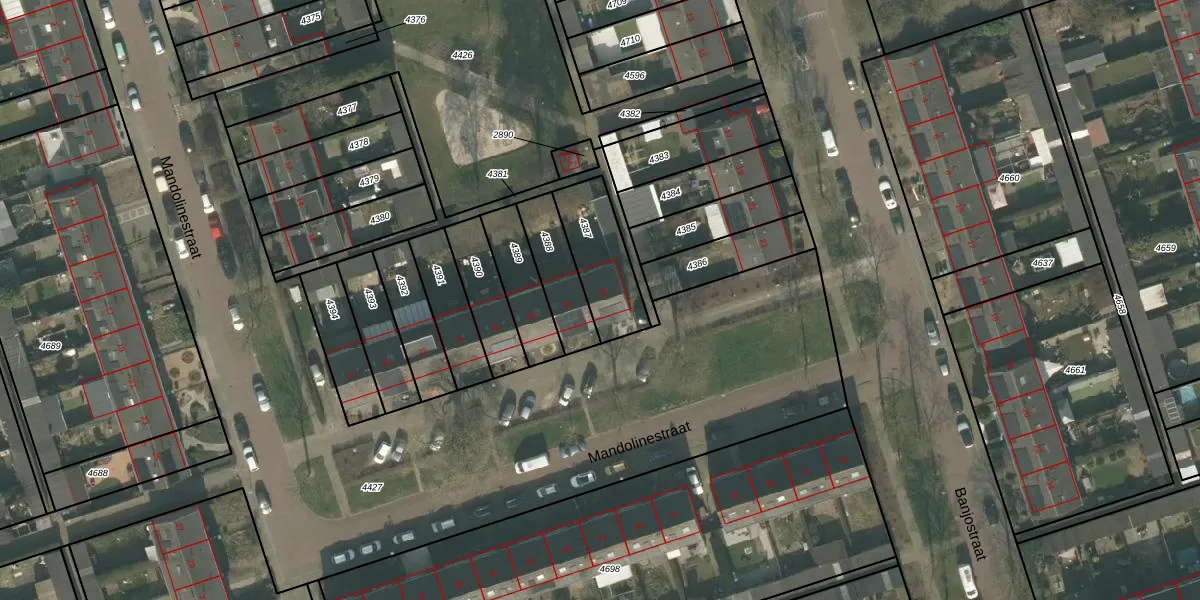 Mandolinestraat 32 is gelegen op kadastraal perceel UDN00B4387. Deze kadastrale aanduiding is uniek en wordt gebruikt door het Kadaster om eigendomsrechten en andere zakelijke rechten vast te leggen. Het perceel maakt onderdeel uit van de kadastrale gemeente Uden.