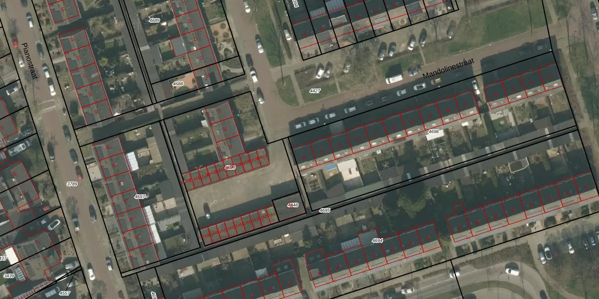 Mandolinestraat 33 is gelegen op kadastraal perceel UDN00B4698. Deze kadastrale aanduiding is uniek en wordt gebruikt door het Kadaster om eigendomsrechten en andere zakelijke rechten vast te leggen. Het perceel maakt onderdeel uit van de kadastrale gemeente Uden.