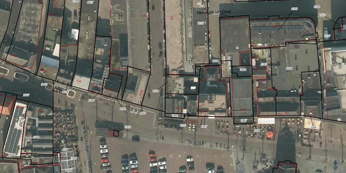 Het perceel waarop Markt 14-B staat heeft een oppervlakte van 212 m². Dit is een middelgroot perceel. De perceeloppervlakte wordt geregistreerd door het Kadaster. Gedetailleerde informatie over de maten van dit perceel kunt u vinden in het rapport Kadastrale kaart met maatvoering van Markt 14-B.