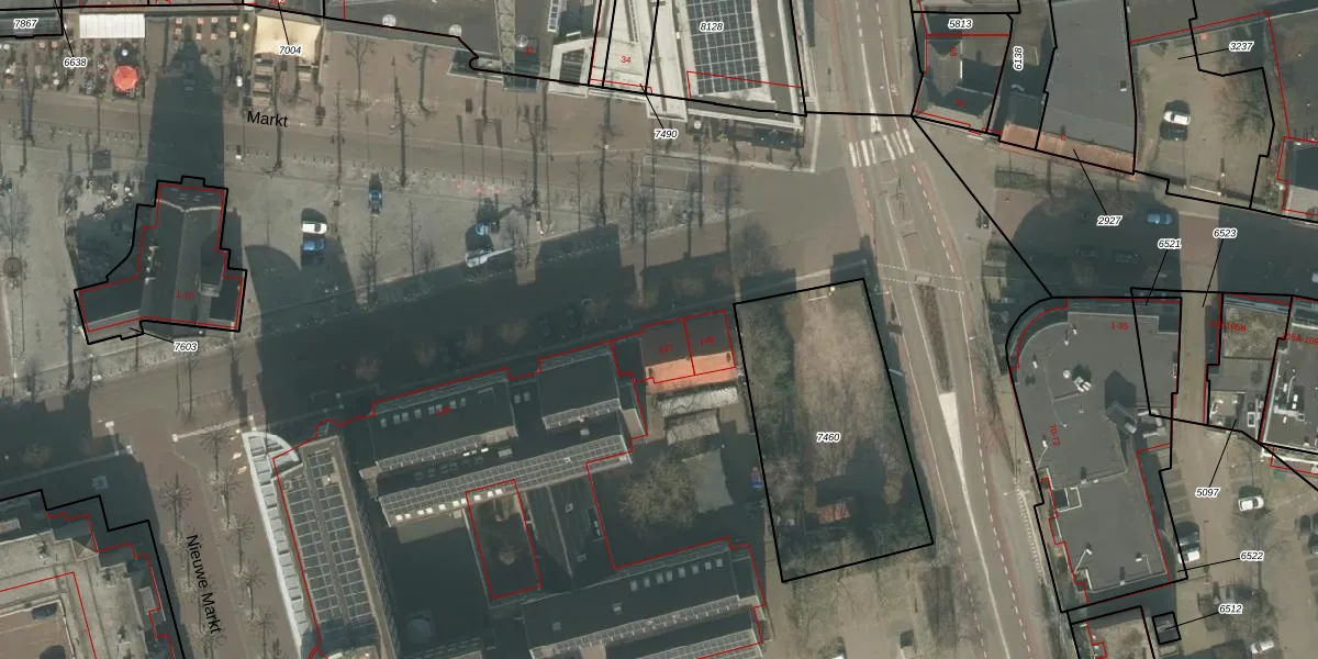 Het perceel waarop Markt 147 staat heeft een oppervlakte van 4,2 ha. Dit is een zeer groot perceel. De perceeloppervlakte wordt geregistreerd door het Kadaster. Gedetailleerde informatie over de maten van dit perceel kunt u vinden in het rapport Kadastrale kaart met maatvoering van Markt 147.
