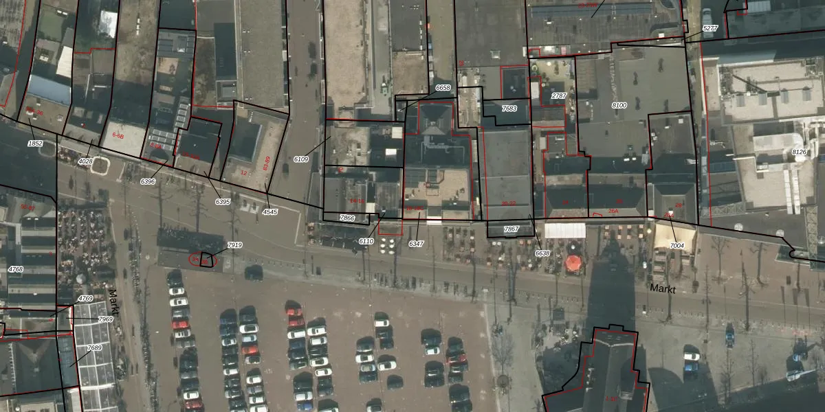 Het perceel waarop Markt 18-A staat heeft een oppervlakte van 500 m². Dit is een groot perceel. De perceeloppervlakte wordt geregistreerd door het Kadaster. Gedetailleerde informatie over de maten van dit perceel kunt u vinden in het rapport Kadastrale kaart met maatvoering van Markt 18-A.