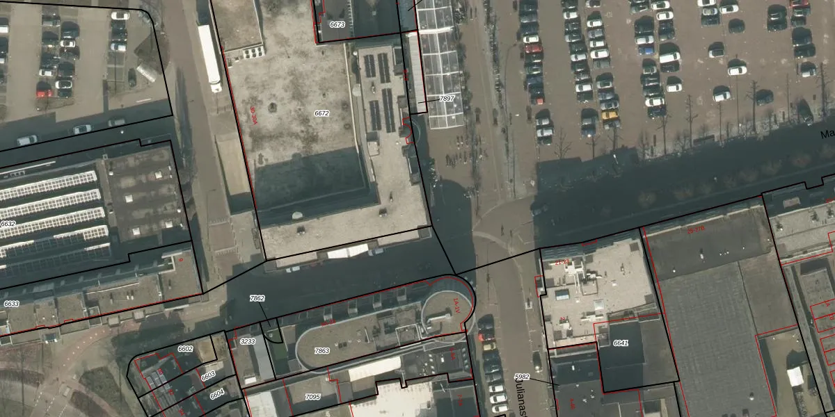 Het perceel waarop Markt 19 staat heeft een oppervlakte van 2535 m². Dit is een zeer groot perceel. De perceeloppervlakte wordt geregistreerd door het Kadaster. Gedetailleerde informatie over de maten van dit perceel kunt u vinden in het rapport Kadastrale kaart met maatvoering van Markt 19.