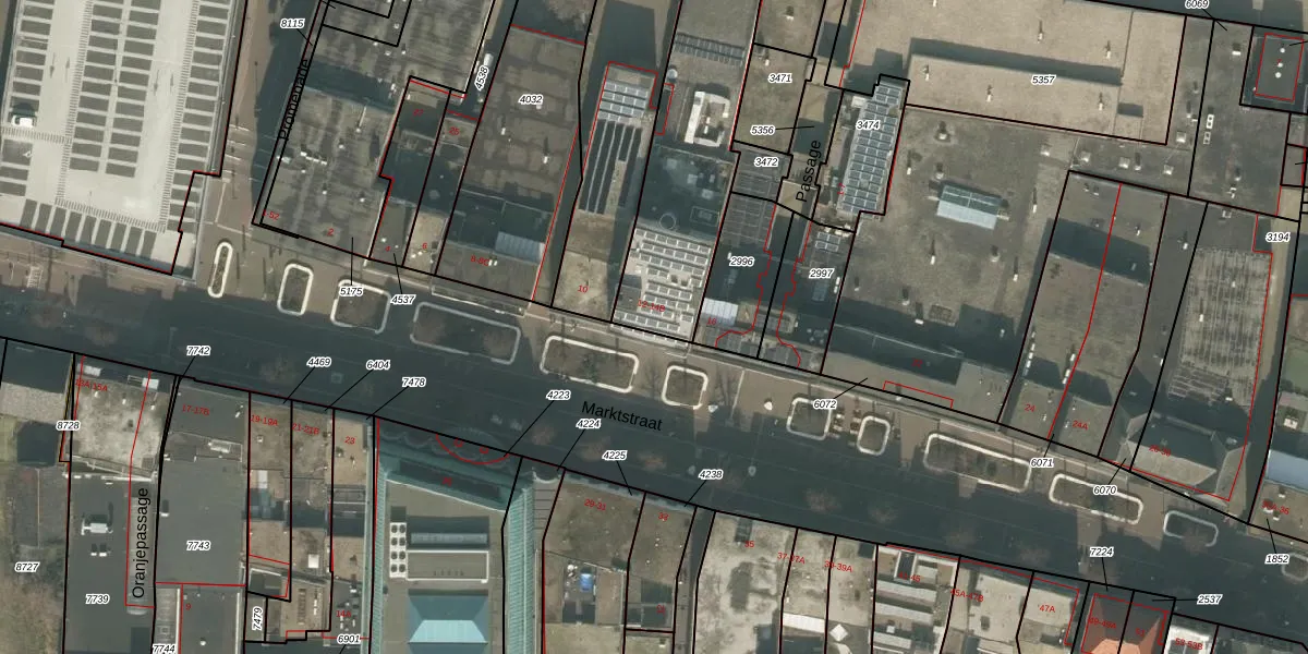 Het perceel waarop Marktstraat 12 staat heeft een oppervlakte van 755 m². Dit is een groot perceel. De perceeloppervlakte wordt geregistreerd door het Kadaster. Gedetailleerde informatie over de maten van dit perceel kunt u vinden in het rapport Kadastrale kaart met maatvoering van Marktstraat 12.