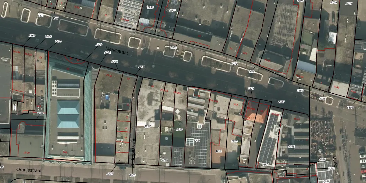 Het perceel waarop Marktstraat 39 staat heeft een oppervlakte van 311 m². Dit is een groot perceel. De perceeloppervlakte wordt geregistreerd door het Kadaster. Gedetailleerde informatie over de maten van dit perceel kunt u vinden in het rapport Kadastrale kaart met maatvoering van Marktstraat 39.