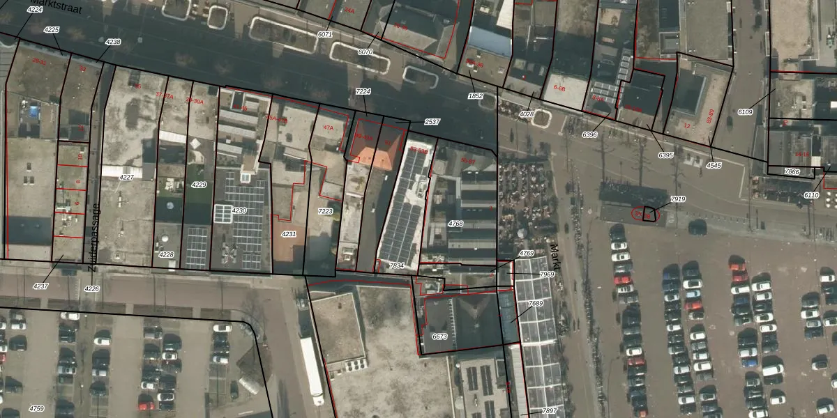 Het perceel waarop Marktstraat 59 staat heeft een oppervlakte van 297 m². Dit is een middelgroot perceel. De perceeloppervlakte wordt geregistreerd door het Kadaster. Gedetailleerde informatie over de maten van dit perceel kunt u vinden in het rapport Kadastrale kaart met maatvoering van Marktstraat 59.