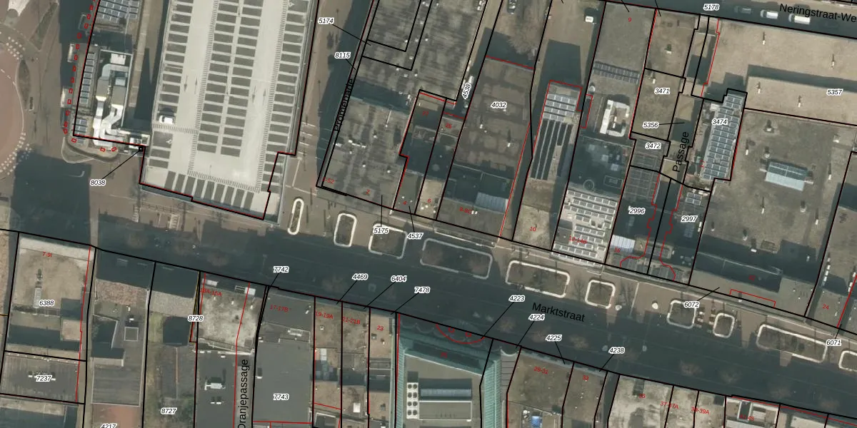 Het perceel waarop Marktstraat 6 staat heeft een oppervlakte van 255 m². Dit is een middelgroot perceel. De perceeloppervlakte wordt geregistreerd door het Kadaster. Gedetailleerde informatie over de maten van dit perceel kunt u vinden in het rapport Kadastrale kaart met maatvoering van Marktstraat 6.