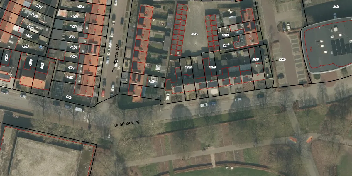 Het perceel waarop Meerloseweg 20 staat heeft een oppervlakte van 4369 m². Dit is een zeer groot perceel. De perceeloppervlakte wordt geregistreerd door het Kadaster. Gedetailleerde informatie over de maten van dit perceel kunt u vinden in het rapport Kadastrale kaart met maatvoering van Meerloseweg 20.