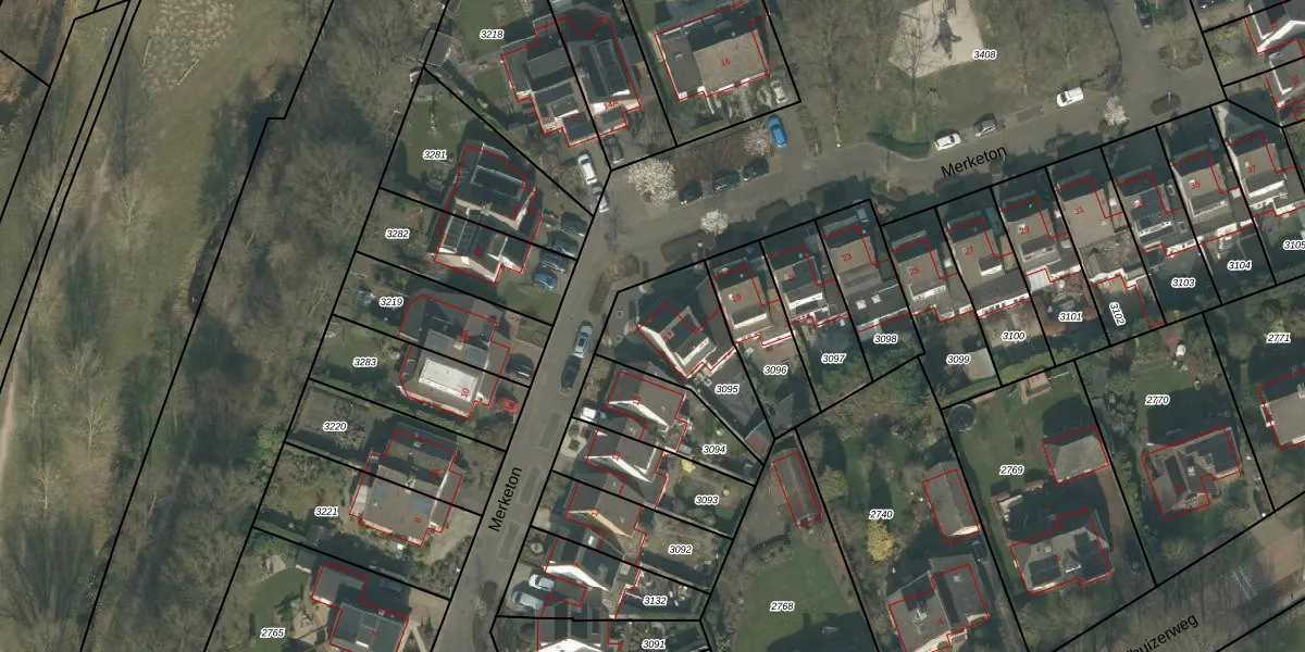 Het perceel waarop Merketon 17 staat heeft een oppervlakte van 377 m². Dit is een groot perceel. De perceeloppervlakte wordt geregistreerd door het Kadaster. Gedetailleerde informatie over de maten van dit perceel kunt u vinden in het rapport Kadastrale kaart met maatvoering van Merketon 17.