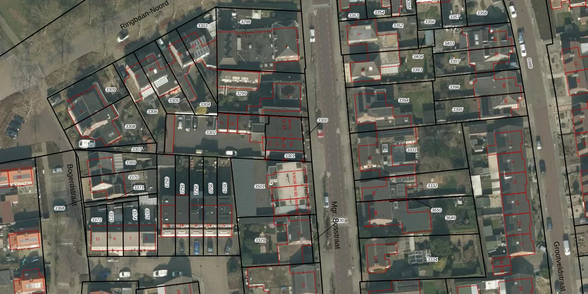 Mgr. Bosstraat 7-A is gelegen op kadastraal perceel UDN00L3301. Deze kadastrale aanduiding is uniek en wordt gebruikt door het Kadaster om eigendomsrechten en andere zakelijke rechten vast te leggen. Het perceel maakt onderdeel uit van de kadastrale gemeente Uden.