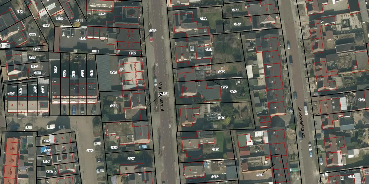 Het perceel waarop Mgr. Bosstraat 8-B staat heeft een oppervlakte van 505 m². Dit is een groot perceel. De perceeloppervlakte wordt geregistreerd door het Kadaster. Gedetailleerde informatie over de maten van dit perceel kunt u vinden in het rapport Kadastrale kaart met maatvoering van Mgr. Bosstraat 8-B.