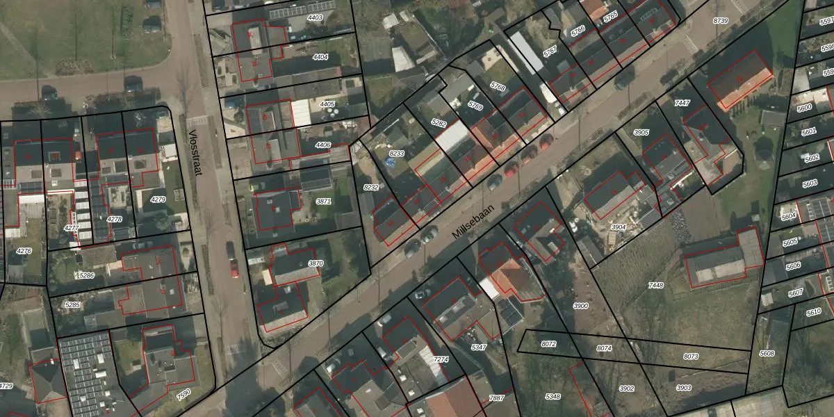 Millsebaan 14 is gelegen op kadastraal perceel UDN00M8233. Deze kadastrale aanduiding is uniek en wordt gebruikt door het Kadaster om eigendomsrechten en andere zakelijke rechten vast te leggen. Het perceel maakt onderdeel uit van de kadastrale gemeente Uden.