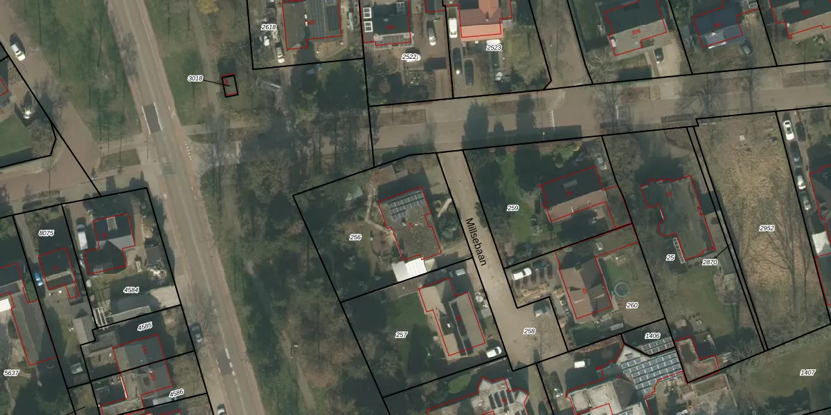 Het perceel waarop Millsebaan 41 staat heeft een oppervlakte van 983 m². Dit is een groot perceel. De perceeloppervlakte wordt geregistreerd door het Kadaster. Gedetailleerde informatie over de maten van dit perceel kunt u vinden in het rapport Kadastrale kaart met maatvoering van Millsebaan 41.