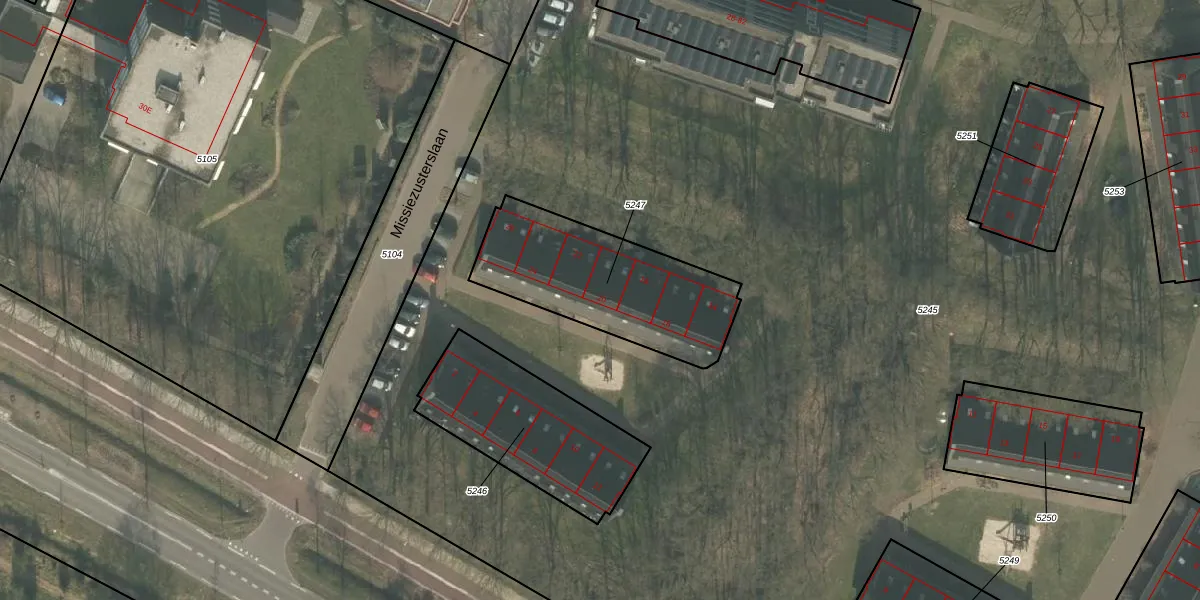 Missiezusterslaan 20 is gelegen op kadastraal perceel UDN00C5247. Deze kadastrale aanduiding is uniek en wordt gebruikt door het Kadaster om eigendomsrechten en andere zakelijke rechten vast te leggen. Het perceel maakt onderdeel uit van de kadastrale gemeente Uden.